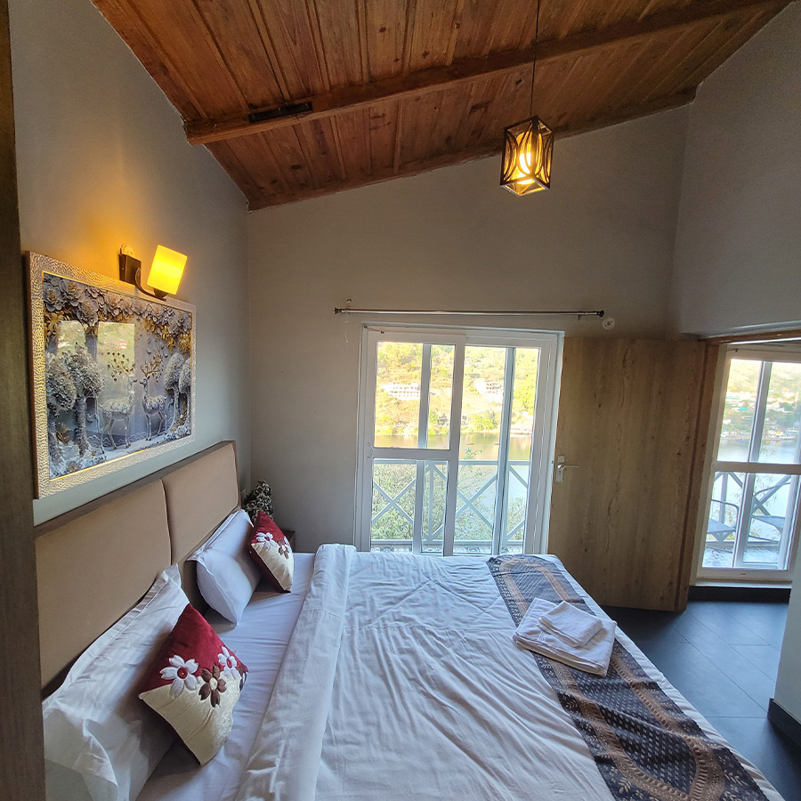 Enjoy breathtaking lake views in our spacious 1BHK King Suite, offering the perfect blend of luxury and comfort for a peaceful stay.